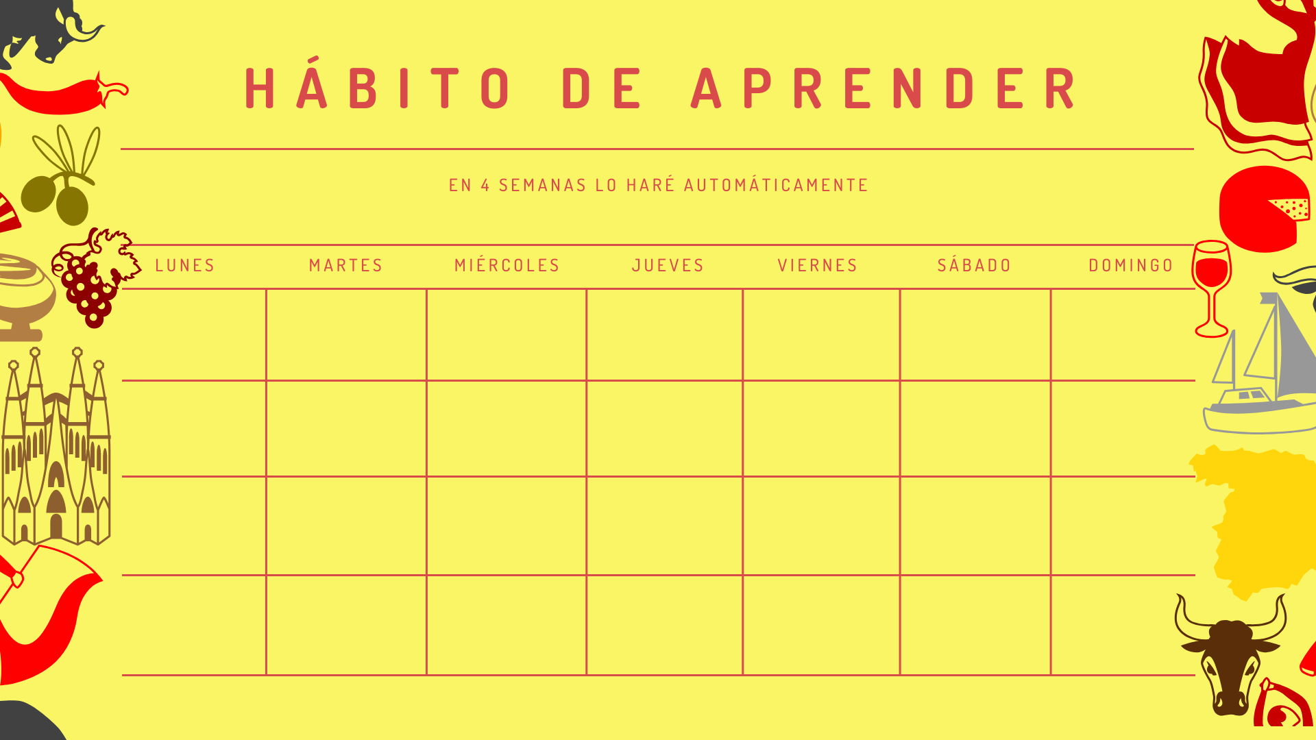Para seguir implementando el plan, necesitamos desarrollar hábitos que nos ayuden a trabajar más fácilmente para conocer español (o cualquier otro idioma extranjero). Como ya he mencionado, especialmente al principio necesitaremos recordatorios. Tenemos que crear y mantener algunos (o todos) los siguientes hábitos: encender la radio en español por la mañana, escuchar podcasts en español, ver películas originales en español con subtítulos (preferiblemente en español, pero también pueden ser en polaco al principio), etc. Será mucho más fácil de persistir en el aprendizaje. Diferentes personas, diferentes opiniones, pero dependiendo del nivel de la «incomodidad» del hábito, lo mantenemos desde 14 hasta 28 días. Por lo tanto, para asegurarnos de que el hábito se desarrolle y hagamos algunas cosas maquinalmente, os sugiero que implementéis «Recordatorios» durante las 4 semanas completas.